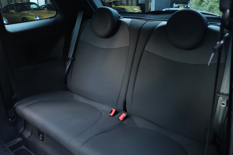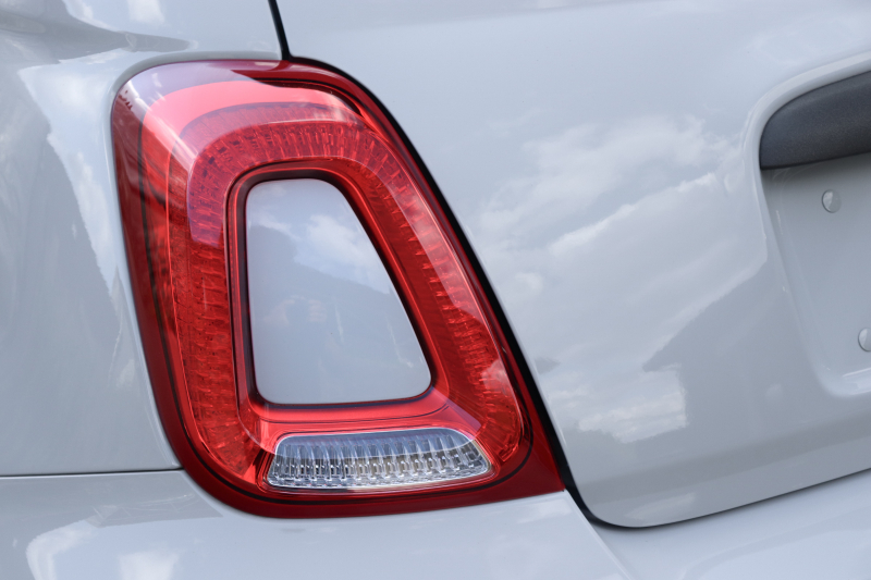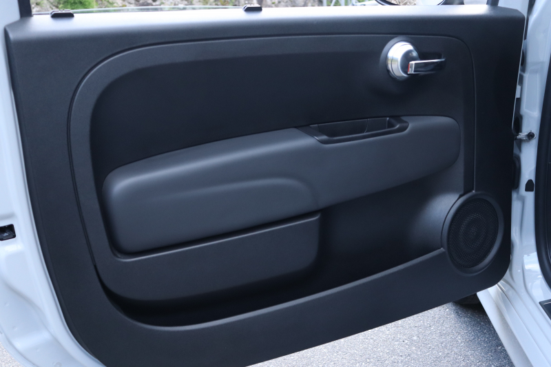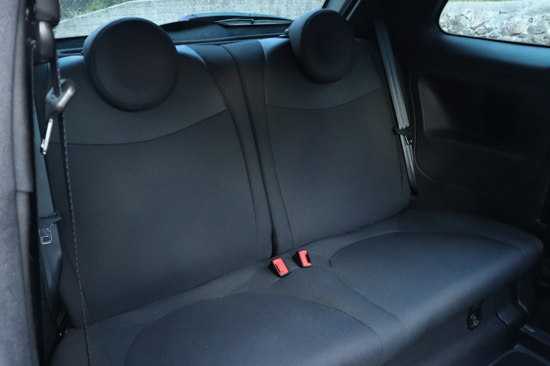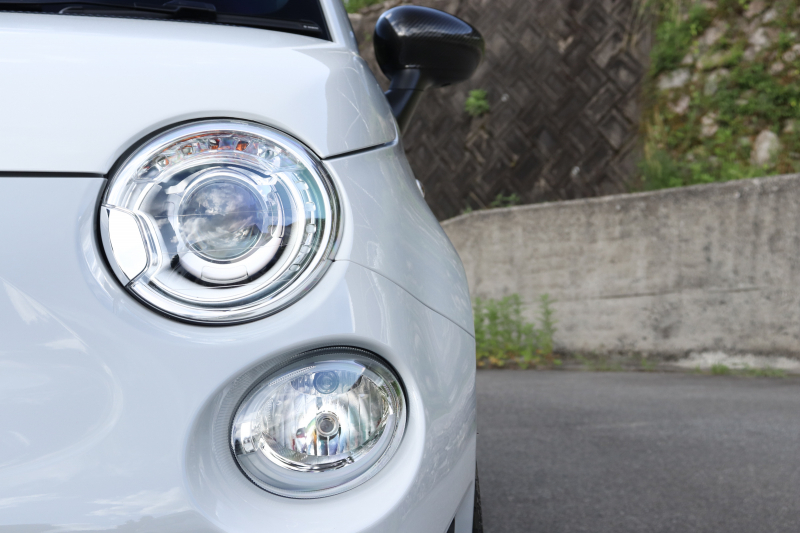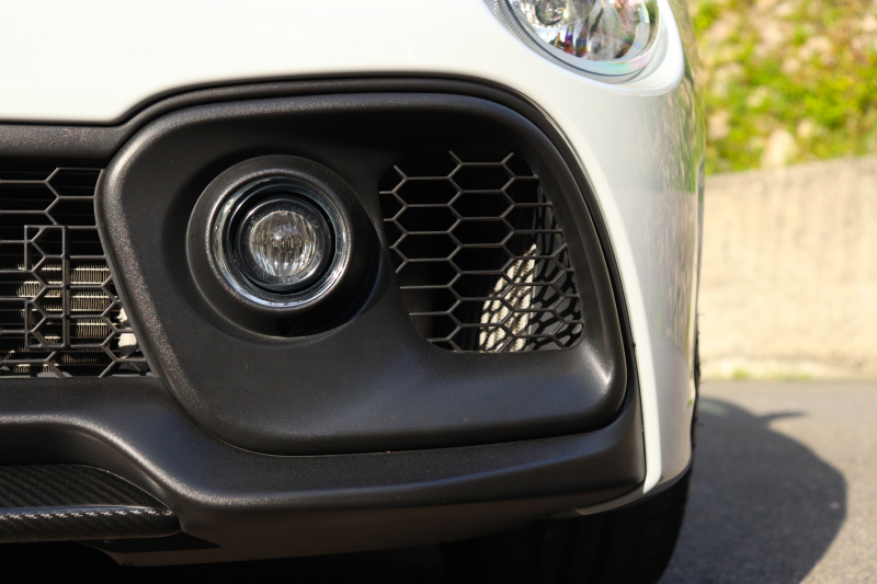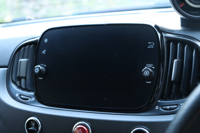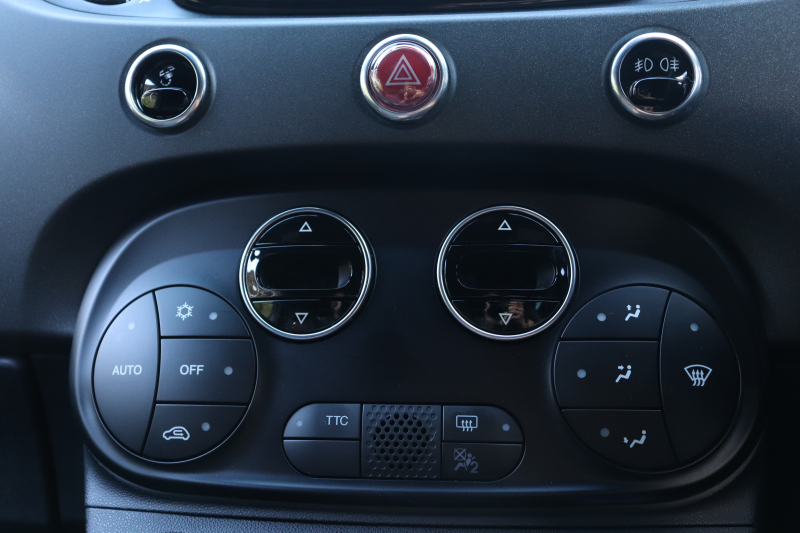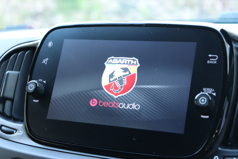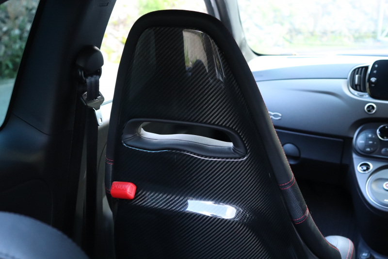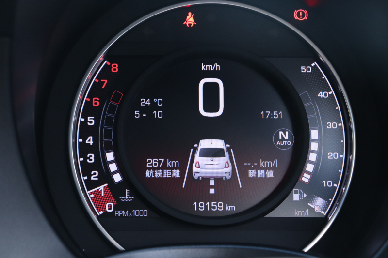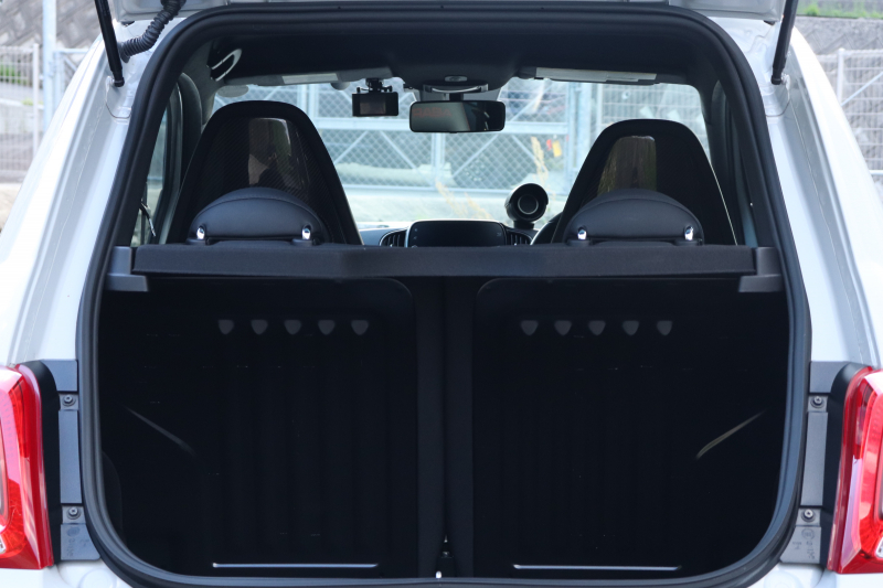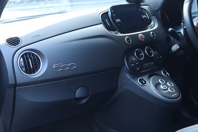 ボディカラーのグリジオ・カンポヴォーロは、アバルトらしい硬派な雰囲気を静かにまとわせています。ブラックの内装とも相まって、視覚的にも引き締まった印象を与えています。
