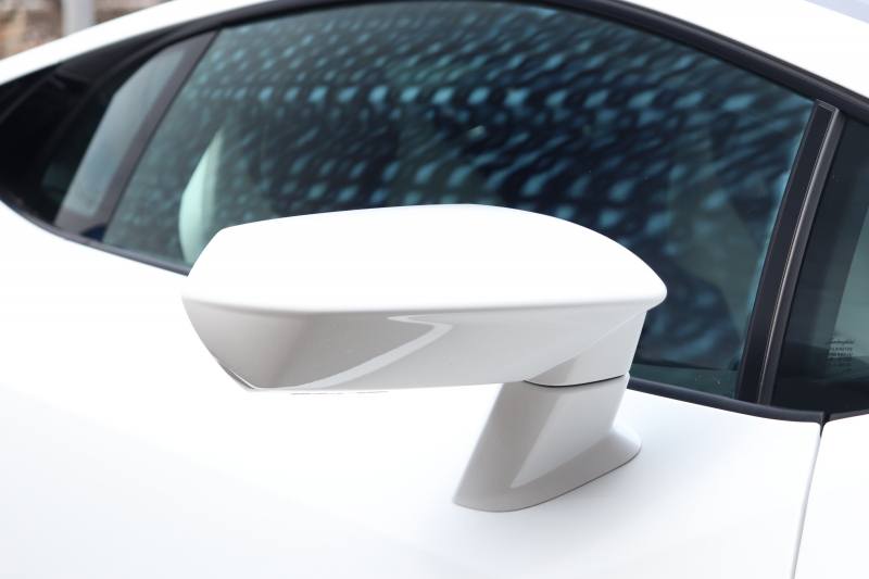 内装もホワイト/ブラックのバイカラーで統一。スポルティーボアルカンターラEVOトリム、アルカンターラルーフ、ホワイトステッチが外装との連続性を持たせています。ヘッドレスト刺繍やダッシュボードロゴ、カーテシランプの演出に至るまで、色味の方向性は一貫。夜間にはアンビエントライトがブラック基調の空間に陰影を与え、モノトーンの世界観をさらに際立たせます。